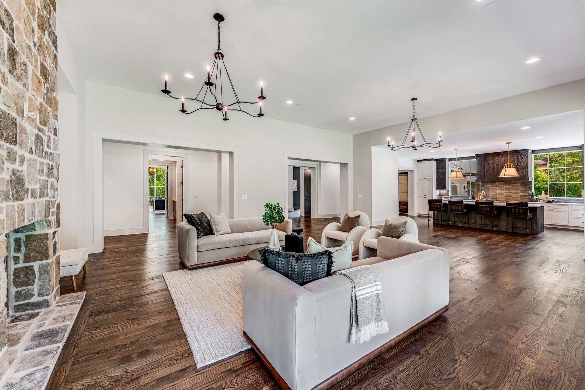 Step inside, and you’ll be greeted by a spacious interior that seamlessly blends modern amenities with classic design elements. The open floor plan creates a sense of flow and allows for easy entertaining and comfortable everyday living. The living areas feature high ceilings, hardwood floors, and large windows that provide abundant natural light. The gourmet kitchen is a chef’s dream, featuring top-of-the-line appliances, ample counter space, and custom cabinetry. Whether you’re hosting a dinner party or preparing a family meal, this kitchen offers the perfect setting to unleash your culinary creativity.