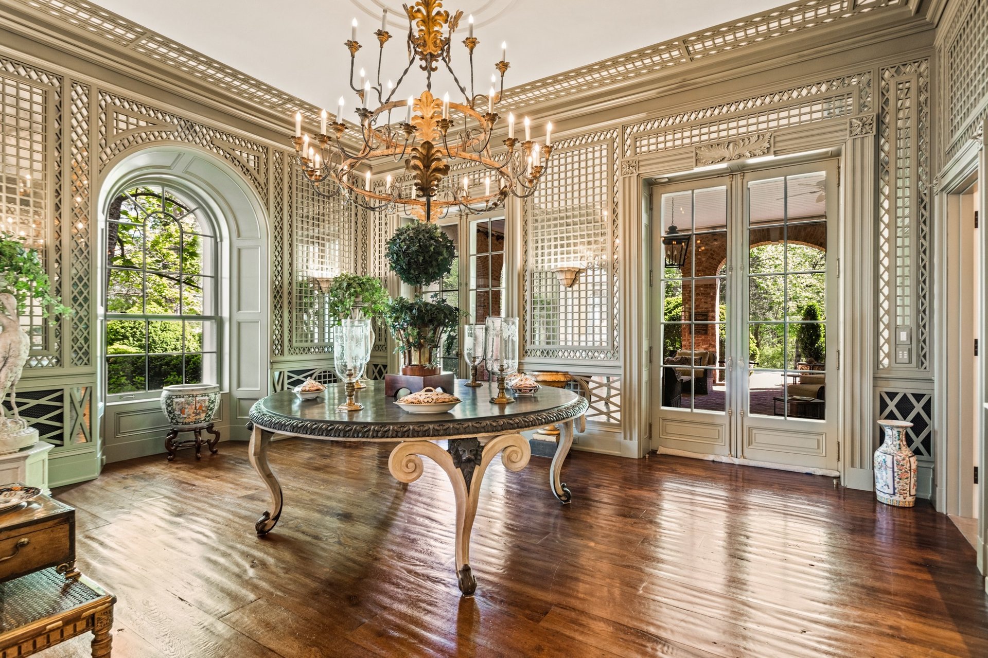 Step inside this magnificent residence, and you’ll be transported to a world of luxury and elegance. The interiors are thoughtfully designed to offer an unmatched living experience. High ceilings, custom millwork, and an abundance of natural light create an inviting atmosphere throughout the home. The opulent details and tasteful finishes resemble the classic style of Southern estates with features such as exterior columns and double balcony porches on the front and back of the house. Ferguson & Shamamian featured the mansion in their book “City and Country Residences,” in which they wrote: “Centered on colonnaded porches in front and back, the house may have an impressive presence, and the body language appears to be formal. But the house that is scaled for entertaining and steeped in regional references offers a surprisingly comfortable, even relaxed environmental reality inside.”