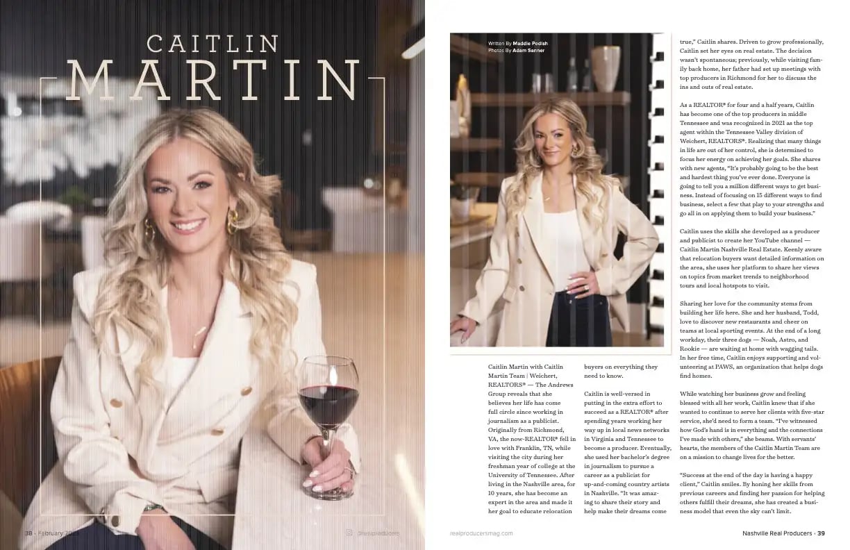 Caitlin uses the skills she developed as a producer and publicist to create her YouTube channel – Caitlin Martin Nashville Real Estate. Keenly aware that relocation buyers want detailed information on the area, she uses her platform to share her views on topics from market trends to neighborhood tours and local hotspots to visit.